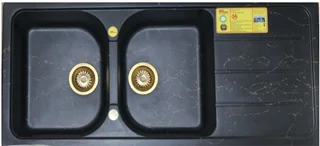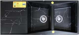 سینک آشپزخانه دو لگنه گرانیتی فانتزی مشکی هرما مدل S1003 همراه با پک سیفون فانتزی و تخته گوشت اشانتیون