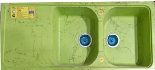 سینک آشپزخانه دو لگنه گرانیتی فانتزی سبز هرما مدل S1003 همراه با پک سیفون فانتزی و تخته گوشت اشانتیون