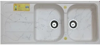 سینک آشپزخانه دو لگنه گرانیتی فانتزی سفید هرما مدل S1003 همراه با پک سیفون فانتزی و تخته گوشت اشانتیون